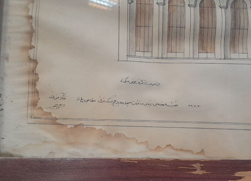 اول اینکه ستونهای شبستان به پای قوسها رسیده بود که احضار فرمودند و گفتند میخواهی چه کنی؟ به عرض رساندم که اینجا پای دور است. پنجاه چشمه عرقچین بالا خواهد آمد. امر کردند که مسطح بپوشان چون قم گرم است و مردم شبها میخواهند بر روی بام نماز بخوانند. ناچار چهار متر از کار کاسته شد که از بالا معلوم است، فقط طرف حرم و عرقچین پشت حرم را بالا آوردیم و باقی را اطاعت امر نمودیم و مسطح کار کردیم.