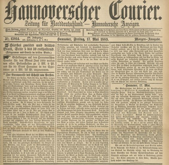 آنچه در پی میآید ترجمهی اختصاصی گزارش تفصیلی روزنامهی آلمانی هانوفرشر کوریر (Hannoverscher Kurier) دربارهی سفر فرنگ ناصرالدین شاه است که در تاریخ 18 می 1889 منتشر شده است.