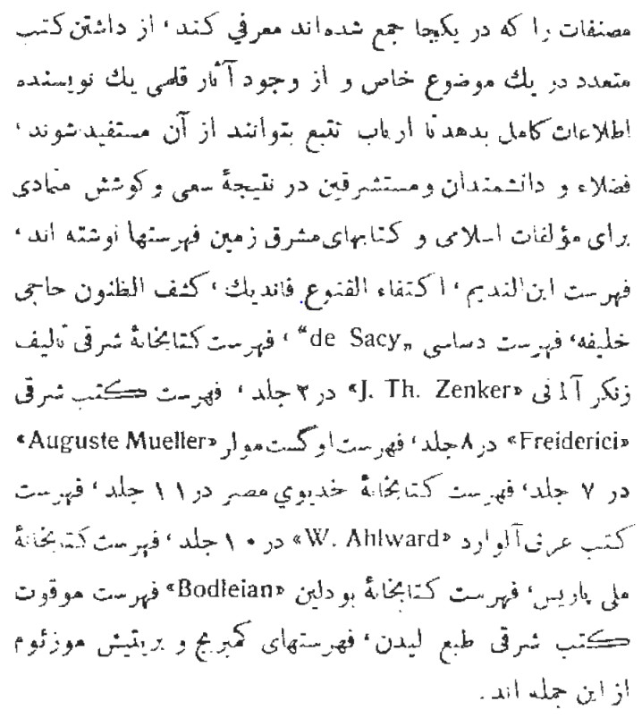 ما باید ببینیم ریشه های فهرست نویسی از کی و به چه دلیل در تمدن اسلامی آغاز شد. در چه دوره ای رشد و از چه زمانی متوقف شد. خیلی ساده، چرا ما آثاری سترگ مانند کار محمد بن اسحاق ندیم نداریم؟ می توان گفت، به شکل ضعیف و محدود داریم، اما در این مسیر به درستی پیش نرفتیم و یک مرتبه ششصد هفتصد سال بعد «کشف الظنون» را نوشتیم. در روزگار جدید هم ذریعه و مانند آن از قبیل کارهای مشار را.