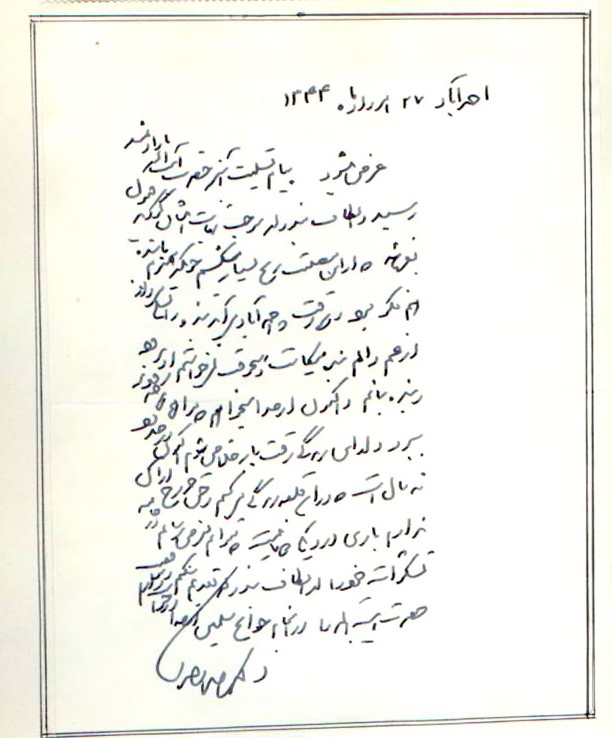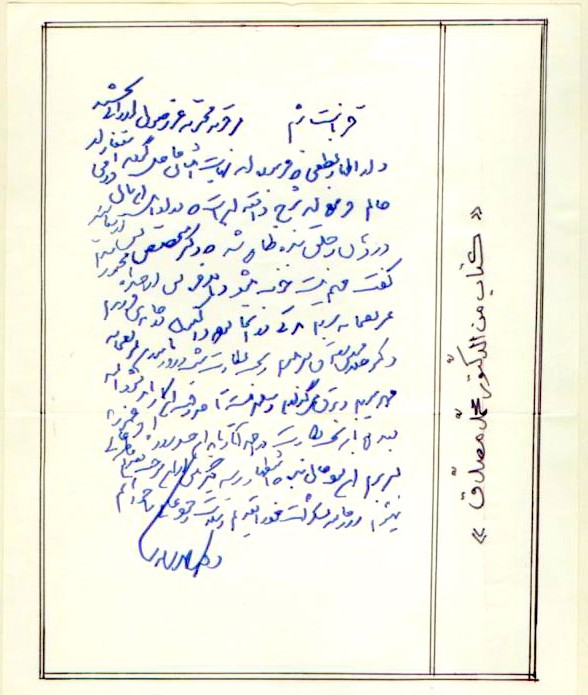 نامهی بالا پاسخ دکتر محمد مصدق به نامهی احوالپرسی آیتالله سید محمدهادی میلانی است.