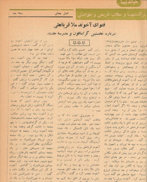 فتوای آخوند ملا قربانعلی درباره نخستین گرامافون و مدرسه جدید